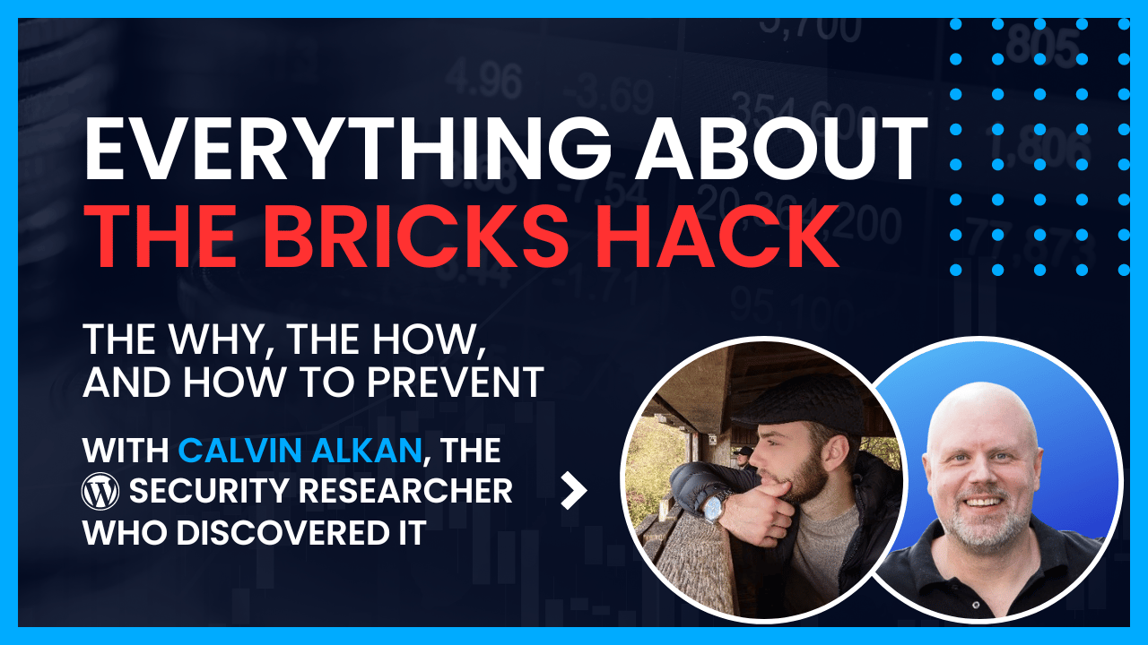 - Bricks, the popular page builder of late saw an extremely severe security vulnerability published this week. The update to fix this is available, but the number of sites that are actively being exploited is wreaking havoc. Calvin Alkan, WordPress Security Researcher found and disclosed the vulnerability. You may remember Calvin from a podcast I did with him last year. Calvin and I are covering everything you want to know about this hack in a YouTube livestream next week Friday.